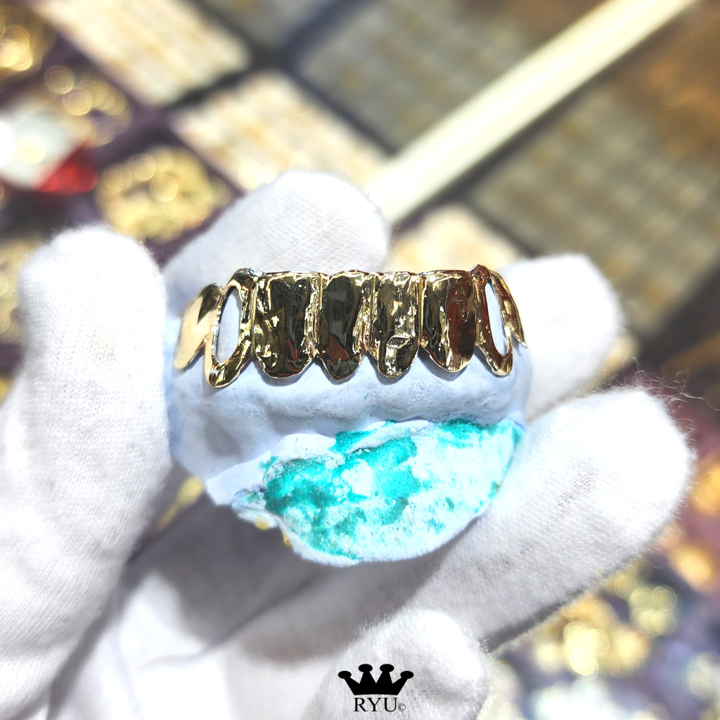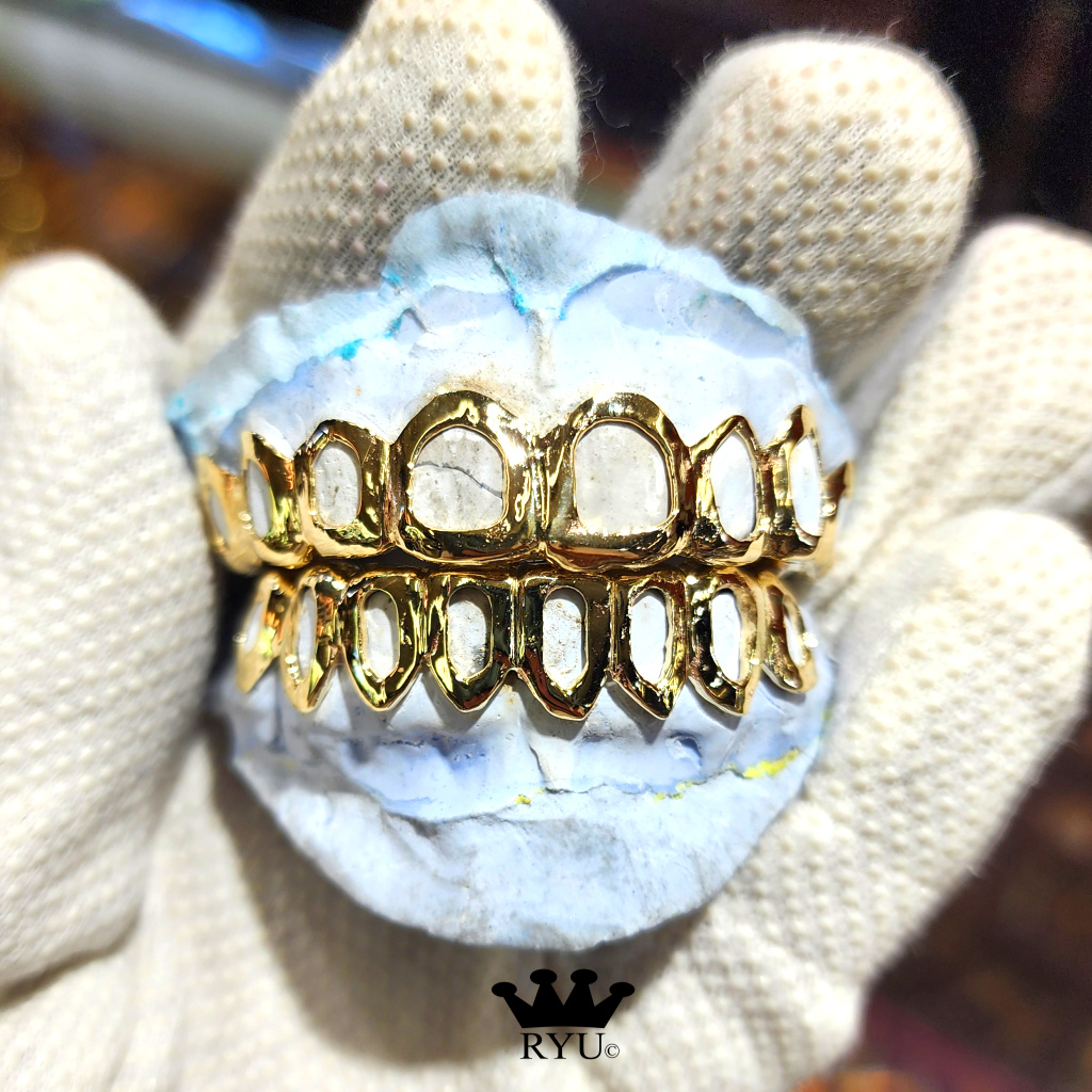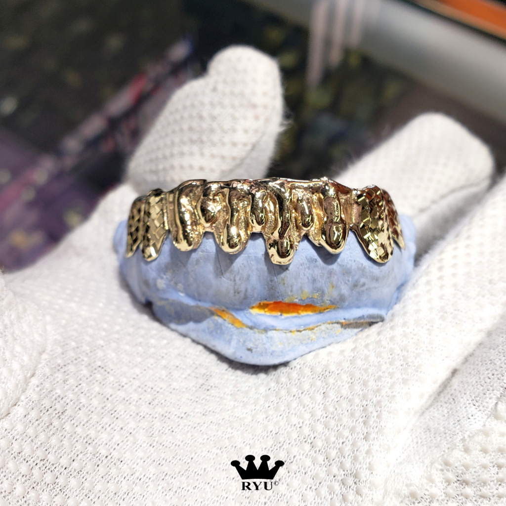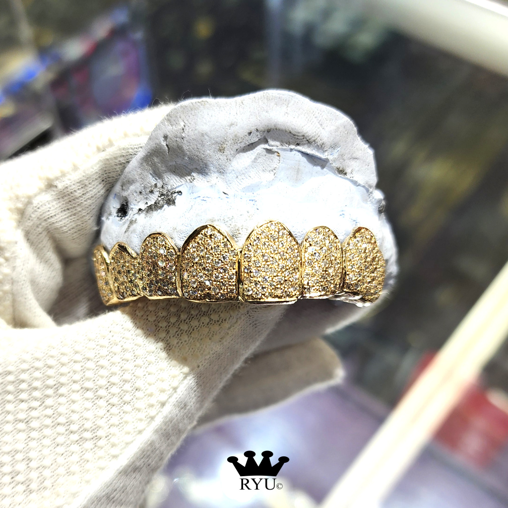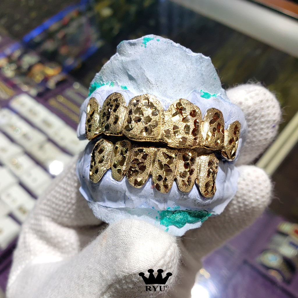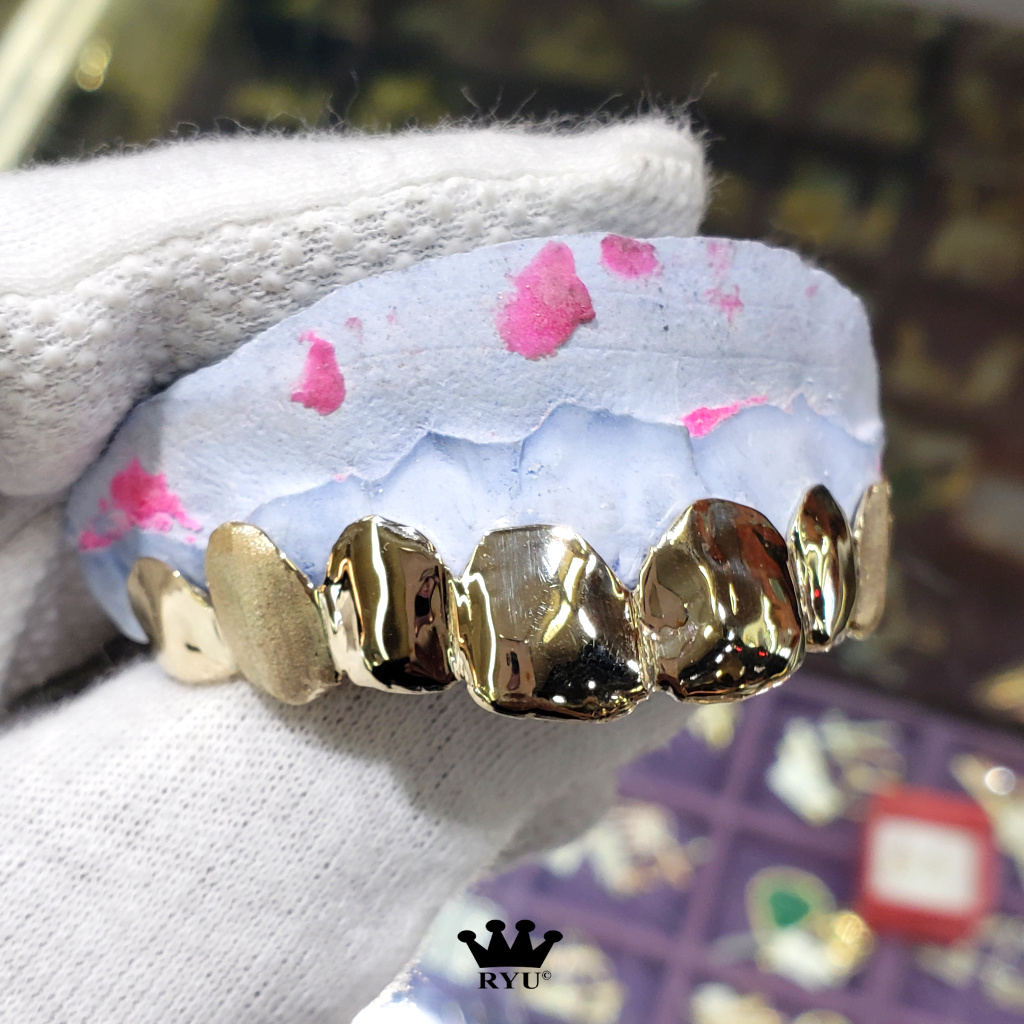 At Ryu’s Jewelry, we specialize in crafting custom grills tailored to your preferences. Our grills are available in 10kt or 14kt yellow, white, and rose gold, as well as sterling silver.