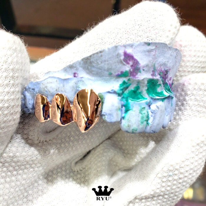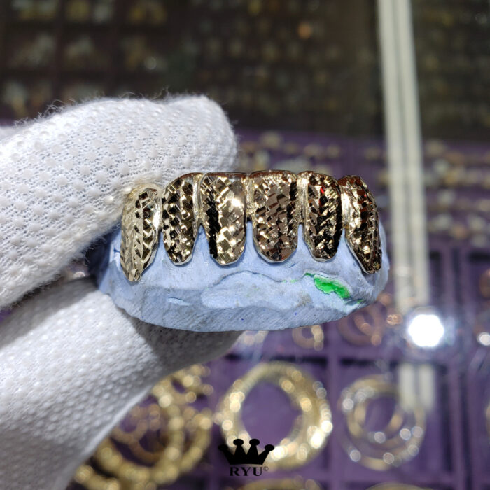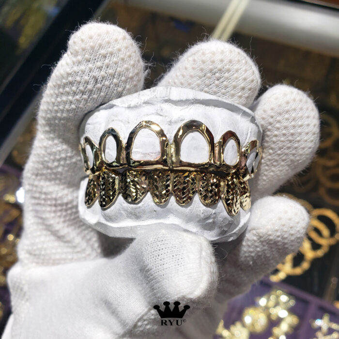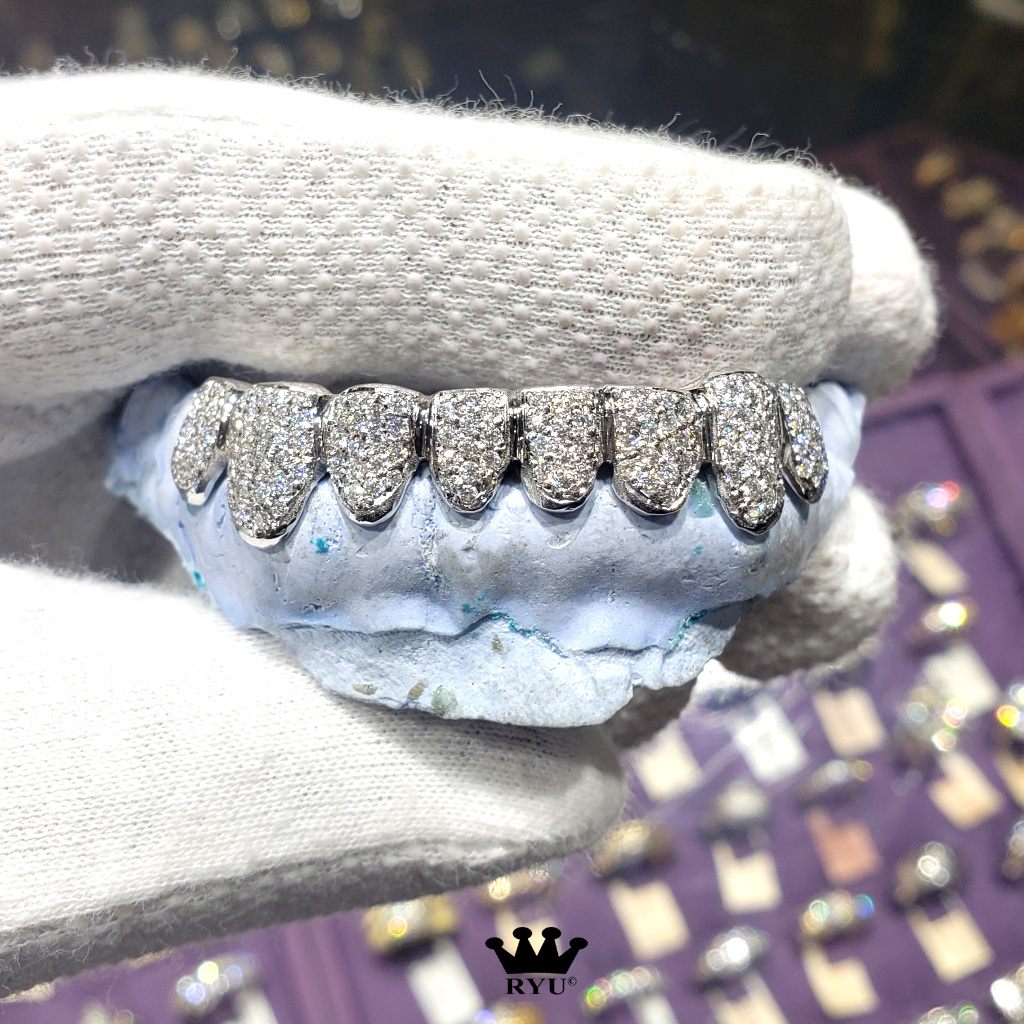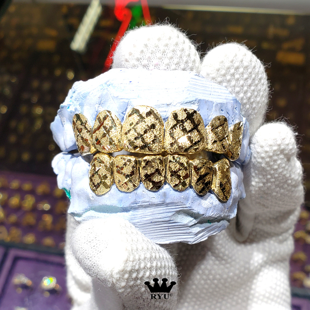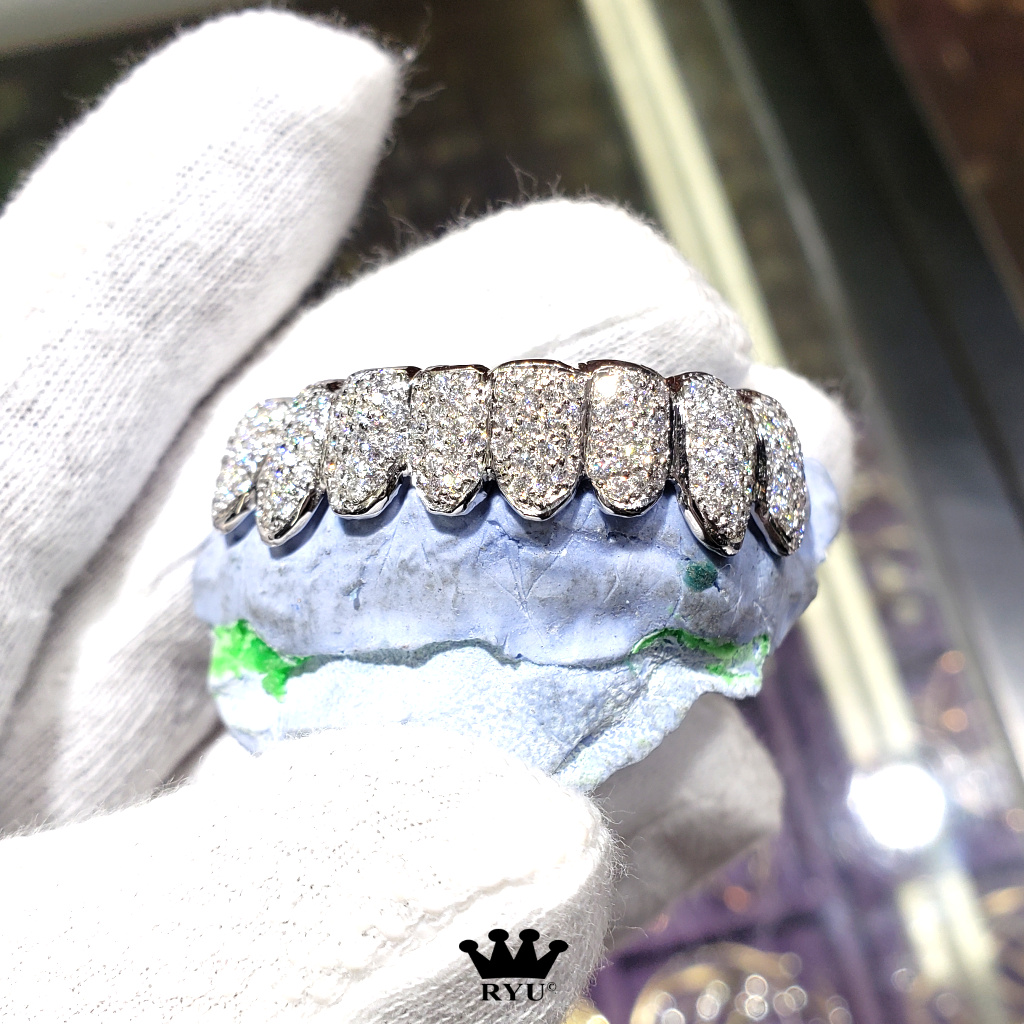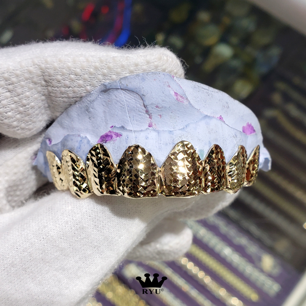At Ryu’s Jewelry, we specialize in crafting custom grills tailored to your preferences. Our grills are available in 10kt or 14kt yellow, white, and rose gold, as well as sterling silver.