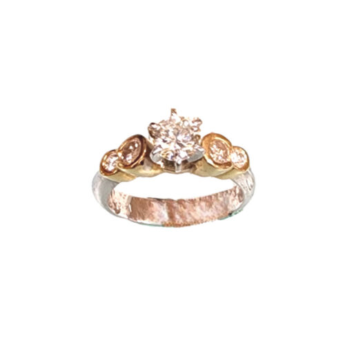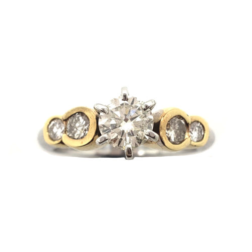 0.44 ct TW of SI1 quality, bezel set, round side diamonds.