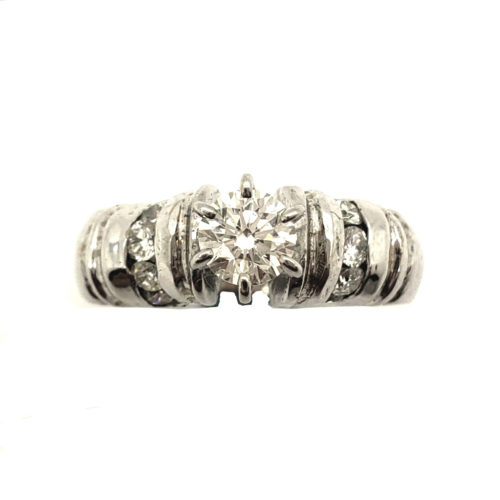 0.40 ct TW of VS1 quality, channel set, round side diamonds.
