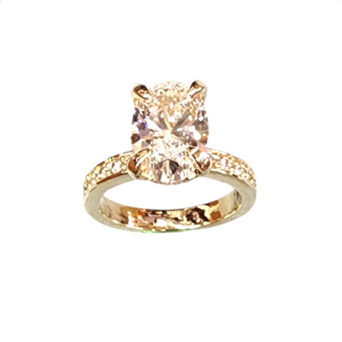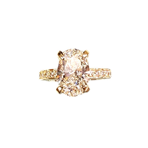 3.55 ct TW of G color, VS1 clarity, oval center LAB diamond.