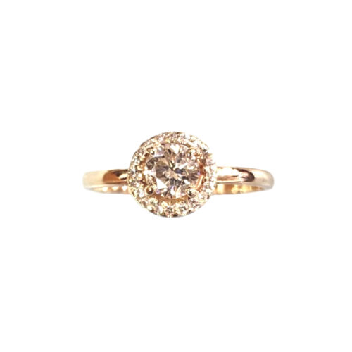 The center diamond is 0.64 ct, H color SI2 clarity, round diamond.