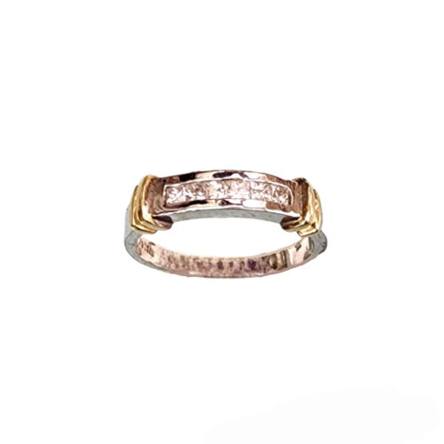 4.1 grams of solid 14kt two tone (yellow and white) gold.