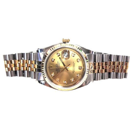 gold dial with diamond hour markers, totaling 0.10ct.